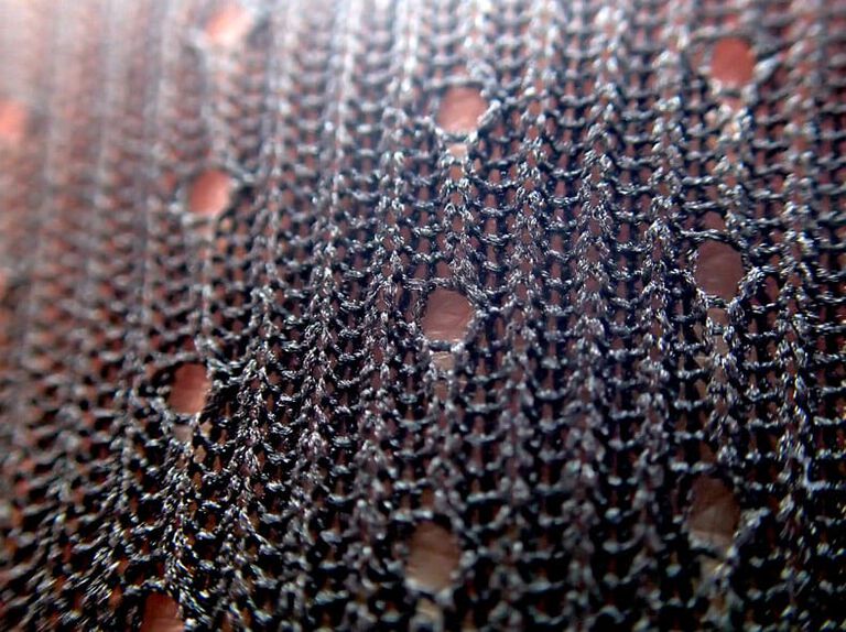 Knitting this ultra-thin perforated mesh fabric with modern machines is nearly impossible due to its complexity.